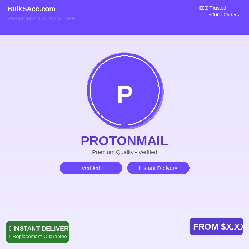 BulkSAcc.com is your trusted source for premium ProtonMail accounts. We offer competitive pricing, instant delivery, and 24/7 customer support.